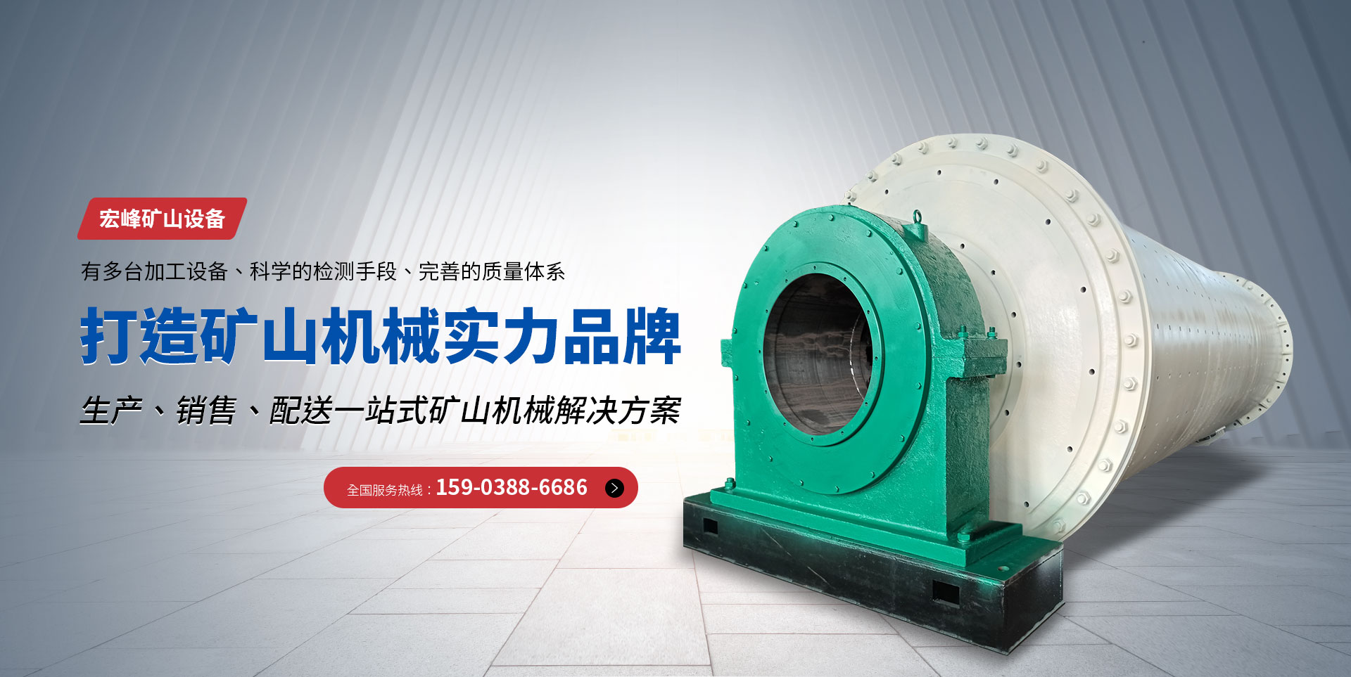 新鄉(xiāng)市宏峰礦山設(shè)備有限公司主要產(chǎn)品有:球磨機(jī)、破碎機(jī)、烘干機(jī)、回轉(zhuǎn)窯、砂石生產(chǎn)線等,生產(chǎn)出來的球磨機(jī)、烘干機(jī)、回轉(zhuǎn)窯,得到客戶的良好贊譽(yù)!  宏峰礦山設(shè)備有限公司,不斷學(xué)習(xí)、不斷自我完善。有多臺加工設(shè)備、科學(xué)的檢測手段、完善的質(zhì)量體系。近幾年來,企業(yè)先后從各大專院校引進(jìn)了人才,現(xiàn)以加工、組裝為主,生產(chǎn)選礦、建材、水泥設(shè)備。  本公司有標(biāo)準(zhǔn)化廠房兩座,各種大、中型金屬加工、鉚焊、裝配設(shè)備。其中具有中、高職稱的管理干部和工程人員8名,形成了技術(shù)力量。本公司遵循對每道工序負(fù)責(zé),對每臺產(chǎn)品負(fù)責(zé),對每位用戶負(fù)責(zé)的質(zhì)量方針,竭誠為用戶服務(wù)。我們可以根據(jù)礦質(zhì)情況和顧客的需要設(shè)計(jì)出適合您現(xiàn)狀的工藝,制定適合您的工藝流程。  公司主要生產(chǎn)有各種大、中型破碎設(shè)備、制砂設(shè)備、選礦設(shè)備、磨粉設(shè)備等系列產(chǎn)品。具體產(chǎn)品有顎式破碎機(jī)、錘式破碎機(jī)、反擊式破碎機(jī)、復(fù)合式破碎機(jī)、沖擊式破碎機(jī)(制砂機(jī))、對輥破碎機(jī)及破碎生產(chǎn)線輔助設(shè)備皮帶輸送機(jī)、振動(dòng)篩、給料機(jī)等破碎設(shè)備;制砂機(jī)、皮帶輸送機(jī)、振動(dòng)篩、洗沙機(jī)等制砂生產(chǎn)線設(shè)備;球磨機(jī)、烘干機(jī)、浮選機(jī)、磁選機(jī)、分級機(jī)、濃縮機(jī)、螺旋溜槽、高頻篩、成品篩和回轉(zhuǎn)窯等選礦生產(chǎn)線設(shè)備;雷蒙磨粉機(jī)、高壓微粉磨、電磁振動(dòng)給料機(jī)、提升機(jī)及各種雷蒙磨配件。  本廠愿與海內(nèi)外朋友開展交流與合作,竭誠為顧客提供產(chǎn)品和服務(wù),熱誠歡迎您光臨本廠指導(dǎo)和洽談業(yè)務(wù)。